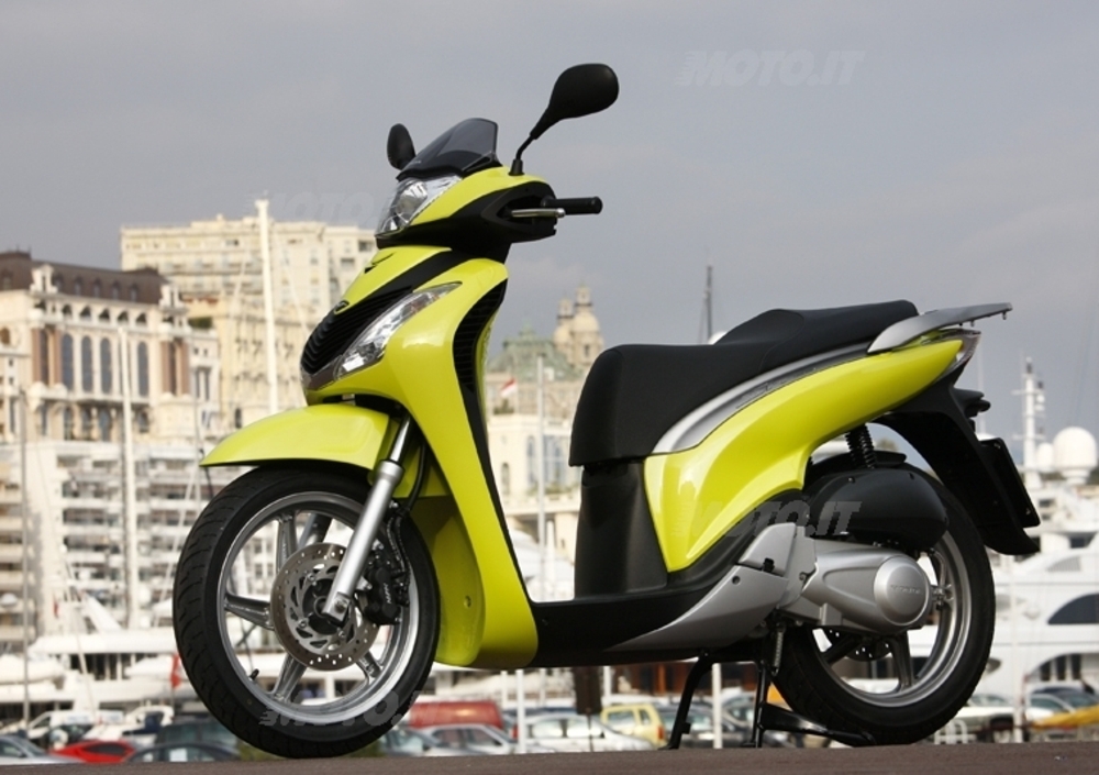 Agile e rapido nel traffico cittadino e sui percorsi ricchi di curve, si distingue per la solidità di appoggio e la precisione anche alle velocità medio alte. Le modifiche apportate al telaio tubolare in acciaio, irrigidito rispetto al modello precedente, permettono alle sospensioni di lavorare al meglio. Anche se forzato e guidato in maniera per così dire disinvolta, l’SH non fa una piega (si fa per dire, viste l’ottima luce a terra). L’impronta a terra da vera moto, le gomme 120/80-16 posteriore e 100/80-16 anteriore, permettono di contare in ogni situazione su di un grip eccellente, che permette, inoltre, di sfruttare al meglio il potente impianto frenante (ora disponibile anche il disco posteriore). In entrambe le versioni, con e senza disco al posteriore, l’SH frena alla grande e senza stancarsi mai. Difficile trovare un concorrente che riesca a staccare la ruota posteriore da terra in frenata!
