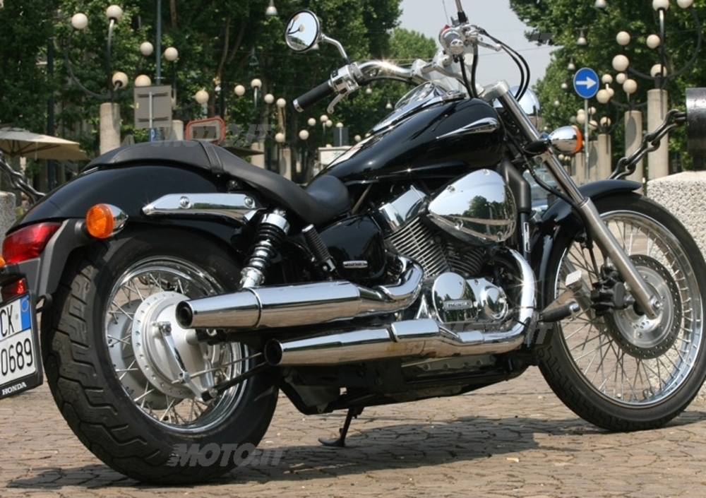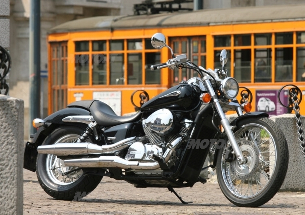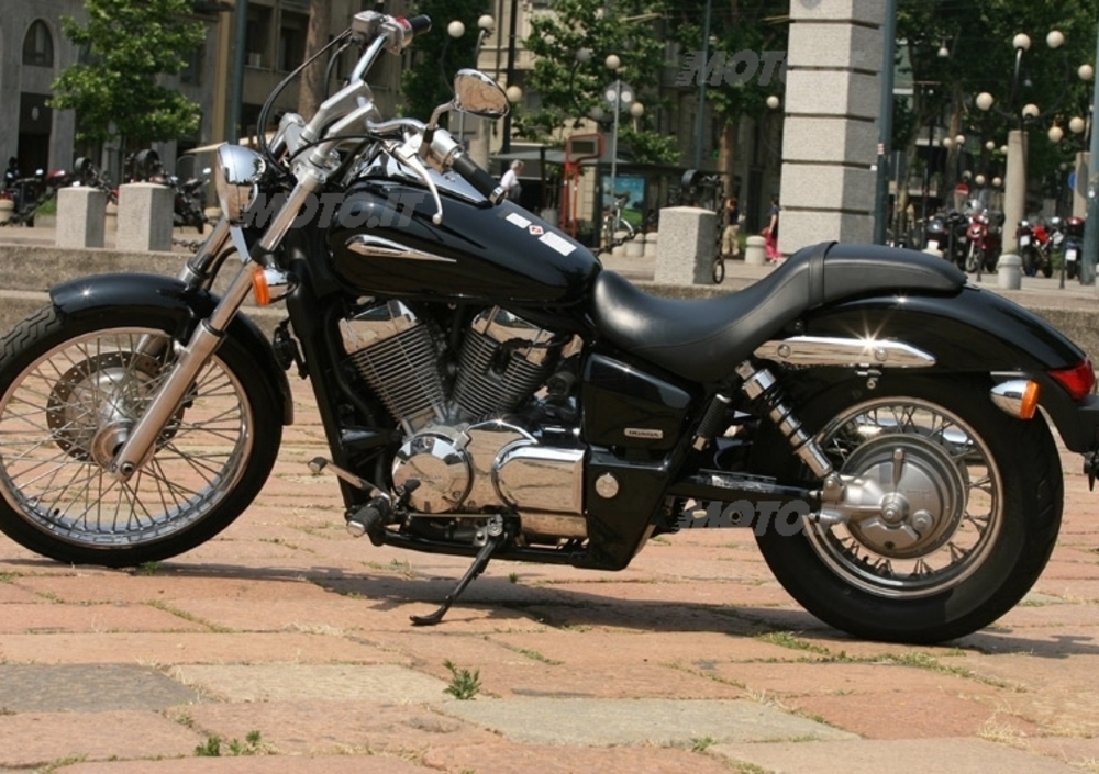 Il periodo in cui in giro pullulavano le custom giapponesi - in particolare di media cilindrata, Honda Shadow 600 e Yamaha XV535 per buona parte – si perde ormai nella notte dei tempi: si torna al secolo scorso, giusto per metterla giù dura. Oggi il fenomeno è drasticamente limitato, anche se nei listini delle Case giapponesi figurano ancora vari modelli di questo segmento di ispirazione USA, ove peraltro il mercato chiaramente è il più importante per questo genere di moto. Qui in Italia, insomma, le custom “piccole” non esistono più: la cilindrata minima disponibile è di 750 cc, con motore ovviamente bicilindrico a V, come impone il regolamento non scritto della categoria (le Harley sono così, quindi…). Sono due i modelli che montano questo motore, e si tratta delle uniche due custom attualmente presenti nella gamma Honda. Naturalmente si chiamano Shadow: la più pacioccona, con i parafanghi avvolgenti, la ruota anteriore da 17”e qualche lustrino in più costa 7.750 euro (franco concessionario). Quella che abbiamo provato invece è la Shadow Spirit, che costa 100 euro in meno e che è disponibile in due tinte monocolore: Graphite Black e Digital Silver Metallic. In entrambi i casi, i prezzi di listino si decurtano di 500 euro grazie agli incentivi per la rottamazione.