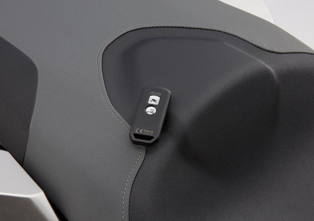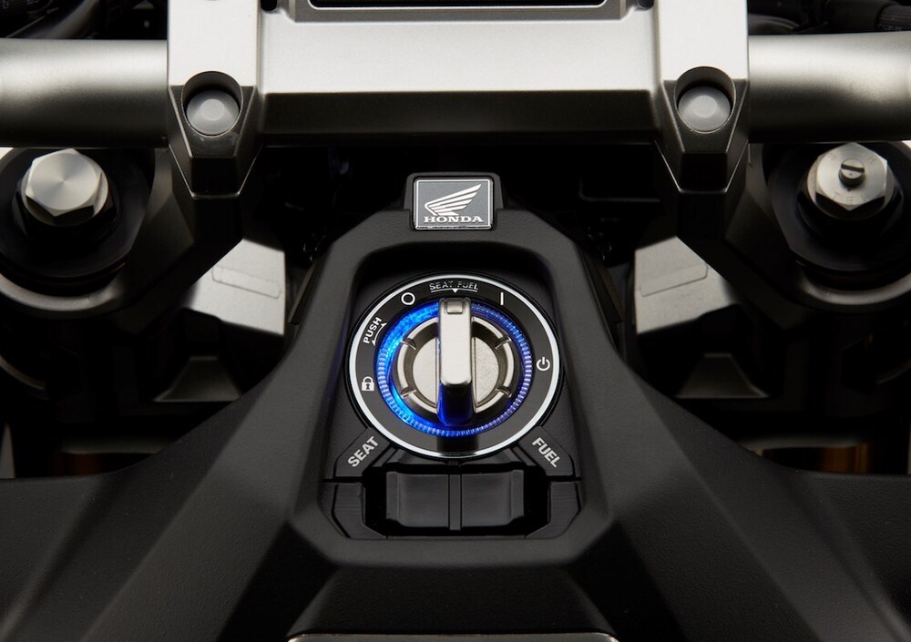 Se finora il paragone con i SUV a quattro ruote, ormai… imborghesitisi a forza di anni di innovazioni, vi è sembrato azzardato, continuiamo citando il sistema Smart-Key, che aziona l'X-ADV da remoto. Basta essere nel raggio di due metri dal veicolo per poter azionare il commutatore ed accendere così la Honda; ruotandolo si aprono sella e sportellino del serbatoio, oppure si procede all’avviamento. E con i due pulsanti posizionati sulla Smart-Key è possibile localizzare il vostro X-ADV (che lampeggerà) oppure disattivare il sistema anche all’interno del range di funzionamento. Naturalmente presente di serie l’immobilizer, che conta anche su un meccanismo integrato che impedisce lo sblocco del bloccasterzo con la forza.