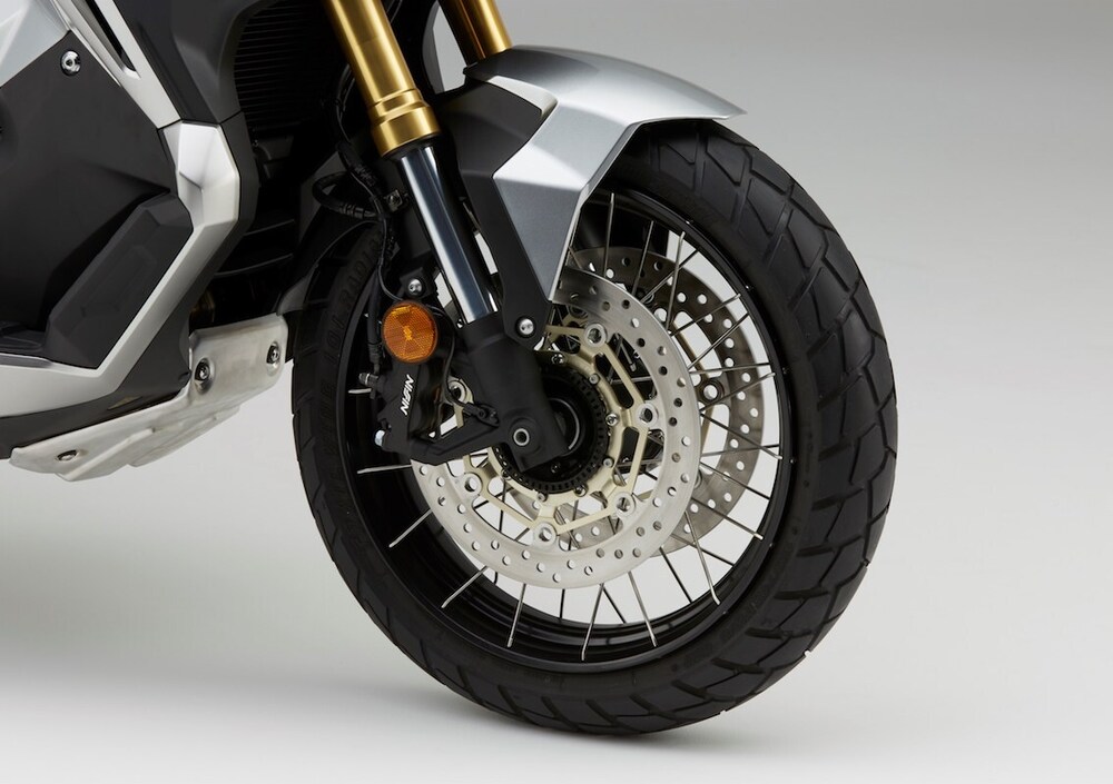 I cerchi tipo tubeless in alluminio sono una coppia da 17” all’anteriore e 15” al posteriore, con raggi tangenziali in acciaio inox calzanti pneumatici Bridgestone TrailWing (ma è in arrivo anche Pirelli, con versioni dedicate delle Scorpion Rally STR), rispettivamente da 120/70 e 160/60 e con intagli on/off per affrontare pIù agevolmente lo sterrato. Da sportiva l’impianto frenante, che tra l’altro rappresentava uno dei punti deboli (più percepiti che reali) di Integra, con due dischi da 296 mm all’anteriore, lavorati da pinze Nissin radiali a 4 pistoncini – ovvero di fatto l’impianto utilizzato sull’Africa Twin – ed un’unità posteriore da 240 mm, con pinza a pistoncino singolo.