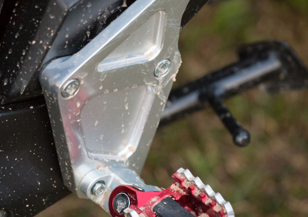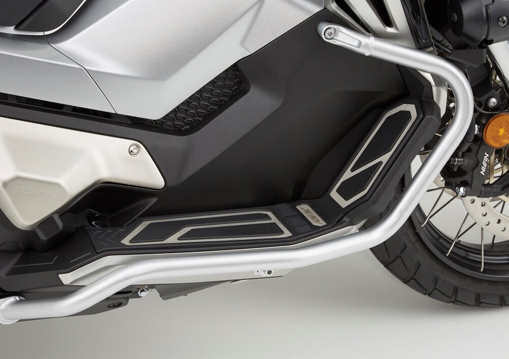 Fra gli altri optional vale la pena di citare i deflettori per gambe e piedi, ma anche – tanto per rafforzare il tema fuoristradistico – le placche copripedane con finiture metalliche, i tubolari protettivi e i fendinebbia a LED; ma soprattutto le pedane aggiuntive che, imbullonate subito dietro i poggiapiedi, permettono a chi voglia avventurarsi in offroad di guidare in piedi.