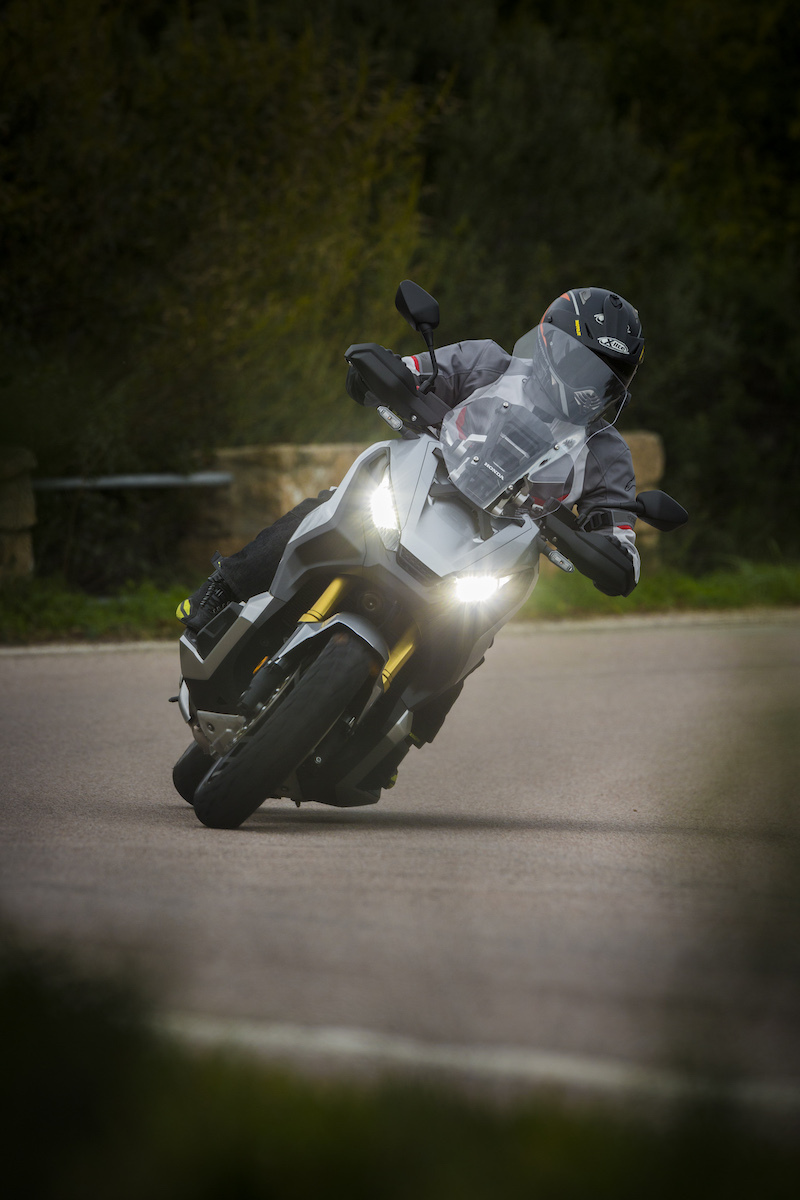 Il motore è salito fino ai 745 cc, arrivando ad offrire 55 cavalli a 6.250 giri e, soprattutto, 68 Nm di coppia, duemila giri più in basso. Prestazioni aumentate (+3 cv e +6% per la coppia) che non sono state penalizzate dall’arrivo dell’ Euro-4, con un cambiamento dell’impianto di scarico, ulteriormente rivisto in questa declinazione X-ADV per offrire un’estetica ed un sound decisamente più grintosi e in tono con l’immagine fuoristradistica del mezzo – chi non ha ancora riconosciuto la citazione all’Africa Twin vada in fondo all’aula a ripassare.
