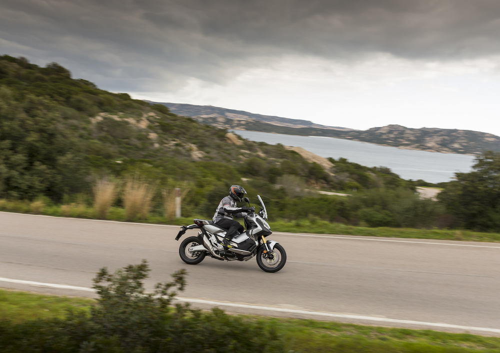 Nei trasferimenti l’X-ADV fa trasparire l’unico, leggerissimo difetto che siamo riusciti a trovargli: qualche leggera vibrazione che filtra in zona pedana agli alti regimi. Poca roba, e facilmente trascurabile in un quadro generale davvero positivo, anche perché, per contro, la protezione aerodinamica è eccellente. Con il plexi regolato sulla posizione più alta si tengono medie da granturismo lasciando fuori dalla pressione aerodinamica solamente le spalle, fatte salvo naturalmente stature cestistiche.