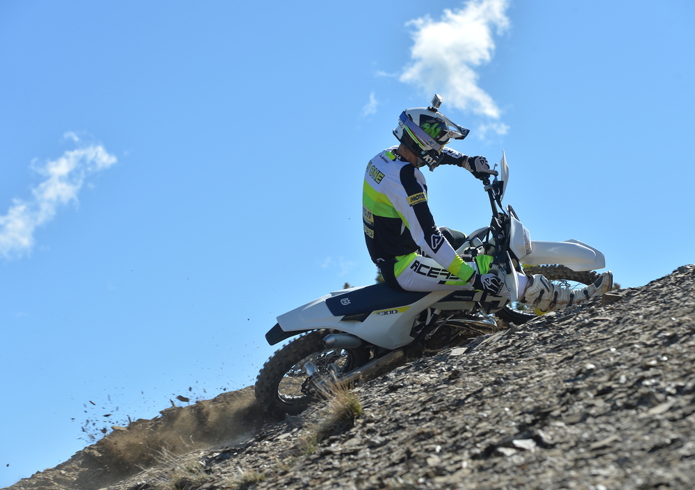 Il bello lo scopri man mano che la usi: il setting di base della nuova Husky è un ottimo compromesso tra ciò che prima si poteva intendere grasso ed un motore pronto e reattivo. L’unicità del nuovo sistema di alimentazione infatti ti permette di avere un motore lento e sornione nella prima parte di erogazione dove ti serve massima trazione e controllo, ma allo stesso tempo una spinta scattante e potente non appena chiedi più energia. Questo ora è possibile grazie al continuo mutamento delle impostazioni a seconda di quanto viene richiesto dal pilota e dalle condizioni esterne. L’erogazione infatti è bella pastosa nella parte centrale, ma se chiedi cavalli arrivano istantaneamente e questo anche ad altitudini dove una normale moto a carburatore andrebbe probabilmente a spinta. Ovviamente le condizioni del test sono state estreme, ai limiti dei normali utilizzi di una moto da enduro, ma è stato essenziale per poter comprendere veramente quanto è versatile ed autonoma la nuova gestione elettronica.