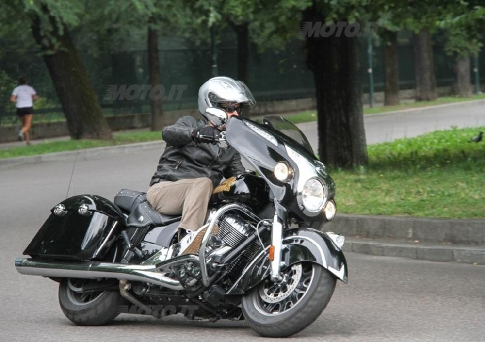 La verniciatura della carrozzeria e la finitura del motore sono molto curate, i cavi passano all'interno del manubrio e la sella, dotata di frange fissate con del velcro, è in morbida pelle cucita ad arte. Le borse rigide da 32 litri non sono ingombranti nel traffico e si possono togliere velocemente quando non servono. Sono abbastanza capienti ma, come del resto sulla concorrenza, sono troppo strette per riporre i caschi: del resto in molti Stati americani l'uso del casco non è obbligatorio. La lunga serie di accessori spazia dai terminali di scarico al parabrezza alto, dai coperchi delle borse con altoparlanti posteriori e portapacchi integrati alle manopole riscaldabili, dagli schienalini anteriore e posteriore ai manubri di foggia differente. Sono tre le colorazioni disponibili: rosso Indian, blu Springfield e nero Thunder.