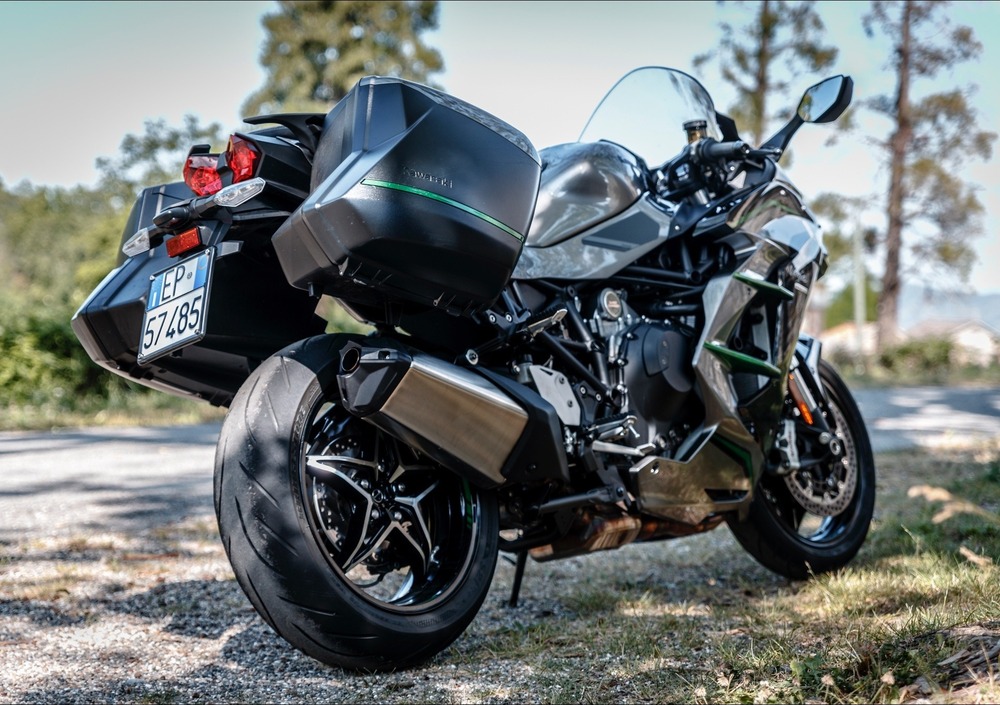 Le sport tourer sono sempre begli oggetti. Ti danno quella posizione di guida da moto sportiva, bella caricata sul davanti. Ma non ti spaccano i polsi e la sella è confortevole per il pilota e per il passeggero. La protezione dall’aria è ottima fino a 200 km/h indicati. Oltre bisogna abbassarsi e lì si entra in un’altra dimensione spazio-temporale. I 299 indicati si raggiungono in un attimo e persino con le borse montate la stabilità è totale. Sulle autostrade tedesche la H2 SX è un cliente scomodo.