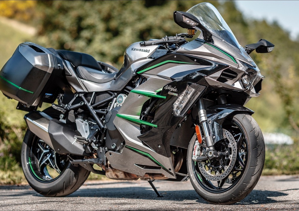 E’ la versione più ricca della Kawasaki Ninja H2 da turismo, la SX SE che ha già provato il nostro Paolillo. Si chiama Plus e porta al debutto sulla Supercharged di Akashi le sospensioni Showa elettroniche semiattive. Costa 25.890 euro e sia affianca alle due versioni H2 SX e H2 SX SE, 19.690 euro la prima, 22.690 euro la seconda. La supercharged Kawasaki in allestimento top di gamma SE Plus ha di serie le Cornering Lights (tre per lato, con accensione in base all’angolo di piega), il Quick-Shift con anche la funzione di scalata assistita me la strumentazione che dalla tecnologia LCD passa a quella TFT. Sono inoltre montati i tubi freno in treccia e non in gomma, il parabrezza maggiorato, il cavalletto centrale e le manopole riscaldabili. La versione SX è disponibile in abito nero, mentre la SE si può ordinare solo nella colorazione tipica nero/verde Kawasaki.