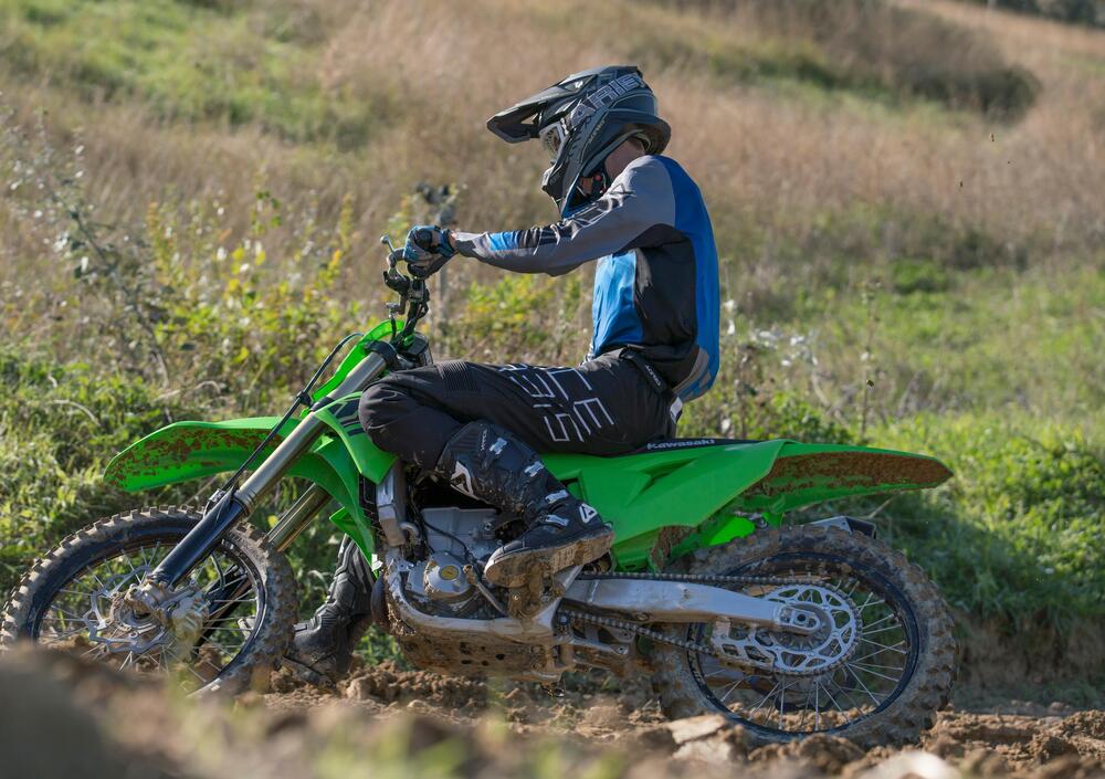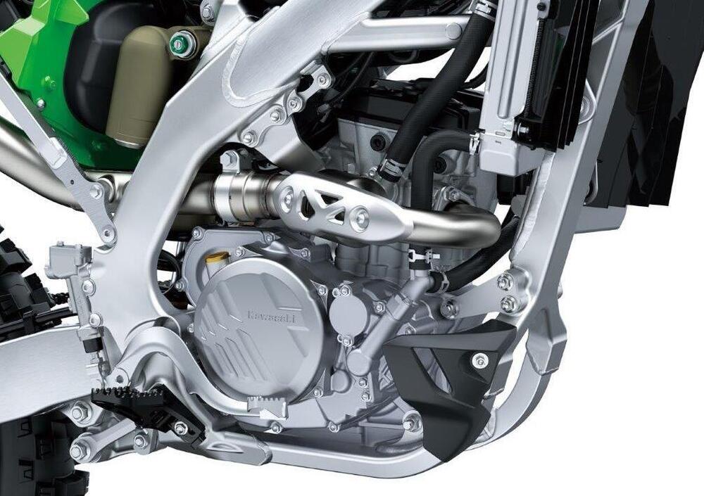 Completamente rifatta, invece, la KX 250, novità dell’anno per quanto riguarda Kawasaki. Il motore adotta il caratteristico sistema a iniezione a doppio iniettore che con le nuove soluzioni permette un incremento di potenza di 1,5 cv in alto senza pregiudicare il tiro ai medi e bassi regimi. Il regime massimo è stato portato a 350 giri/min in più il che aiuta in fase di allungo. La biella è più lunga di tre mm e quindi pistone e cilindro sono stati adeguati. Valvole in titanio e fasatura delle alzate dell’albero a camme dello scarico ritardate 3°.