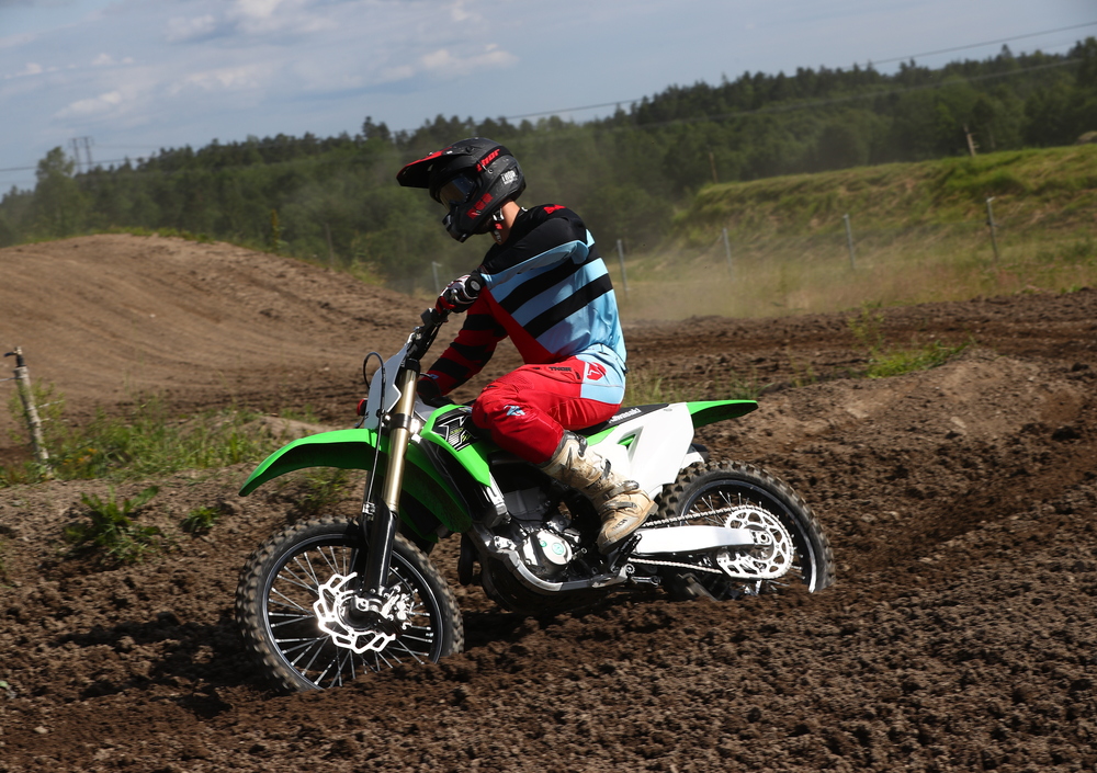 Particolarità di questo press test è stata la possibilità di usare per tutto il giorno la medesima moto: il parco stampa è stato dunque gestito in maniera tale che ogni tester avesse la propria, e questo ci ha permesso di poter lavorare ed approfondirne diversi aspetti provando le differenze ad ogni nuovo ingresso in pista. La differenza più sostanziale rispetto alle KX precedenti è che la 2019 la senti molto più agile e snella tra le mani. L'ergonomia è stata ulteriormente migliorata, ed ora hai uno spazio per poterti muovere davvero immenso. A questo si aggiunge la possibilità di poter ulteriormente personalizzare la seduta grazie alla regolazione delle piastre e delle pedane. In ordine di marcia, la nuova KX assomiglia di più ad una piccola 125 che ad una "quattro tempi", ma allo stesso tempo porta con sè un imbarazzante bagaglio di cavalli .