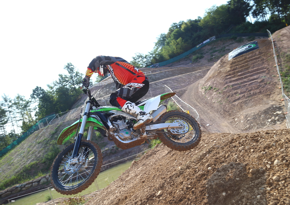 In ordine di marcia la nuova KX non nasconde il vecchio carattere, restando fedele alla stabilità che da sempre l’ha contraddistinta. In aggiunta, però, la versione 2016 è più rapida ed immediata nel cambiare direzione e la cura dimagrante l’ha resa molto meno impegnativa da gestire. Tra le gambe è più snella e meno spigolosa ed anche il fatto che il motore gira in modo più libero, trasmette una sensazione di maggiore leggerezza generale. Il grande pregio di questa quattroemmezzo è che pur essendo tra le più potenti della categoria, rimane molto prevedibile. Questo trasmette fiducia al pilota e sui tracciati di oggi, sempre più veloci e scavati dai grossi quattro tempi, questo è un elemento fondamentale. Sulla pista iridata di Maggiora dove non hai mai respiro e dove il ritmo la fa da padrone, non c’è margine di errore e quindi solo con una guida pulita e fluida si può passare da un ostacolo all’altro senza rischiare la pelle.