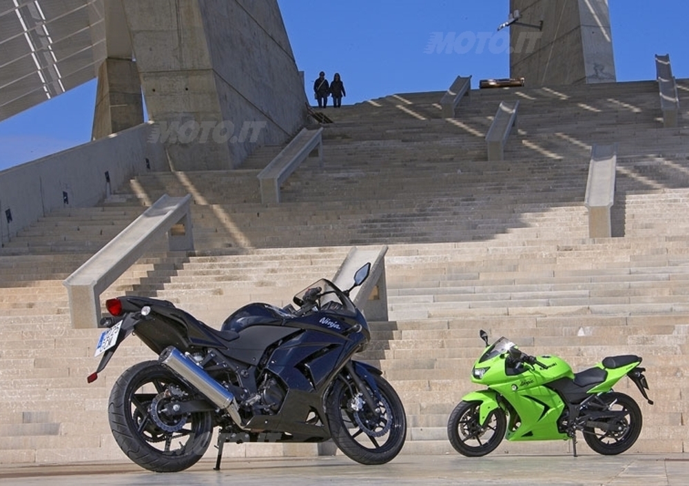 La potenza contenuta offerta dal quarto di litro della Ninja obbliga a un utilizzo duetempistico del propulsore, con la lancetta del contagiri che oscilla costantemente nella zona alta, anzi altissima del contagiri.