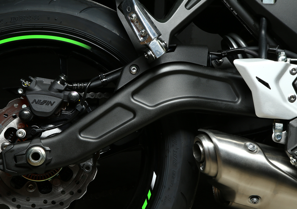 Sono importanti le novità nella ciclistica della Ninja 650, a cominciare dall'arrivo di un nuovo telaio. Kawasaki ritorna infatti a una struttura tubolare, dopo averla impiegata sulla prima ER-6 e fino alla versione del 2011. Ma stavolta il disegno è differente, e nel tracciarlo è stato utile il medesimo software proprietario che Kawasaki ha messo a punto per le potenti Ninja H2. Grazie anche a questa ottimizzazione è stato ridotto il peso del telaio rispetto alla precedente versione ER-6, portandolo a 15 kg. Motore e staffe centrali, inoltre, svolgono anch'essi una funzione portante per la struttura.