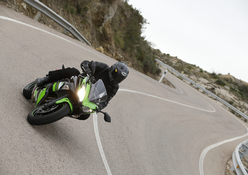 Il salto dalla ER-6F è evidente sul fronte della guidabilità, e non soltanto per il peso; lo è meno dal punto di vista delle prestazioni, che sono comunque adeguate allo spirito di questa facile e divertente stradale con l'abito da super sportiva. Un voto alto va infine ai consumi: è facile percorrere oltre venti chilometri al litro senza risparmiarsi con l'acceleratore.