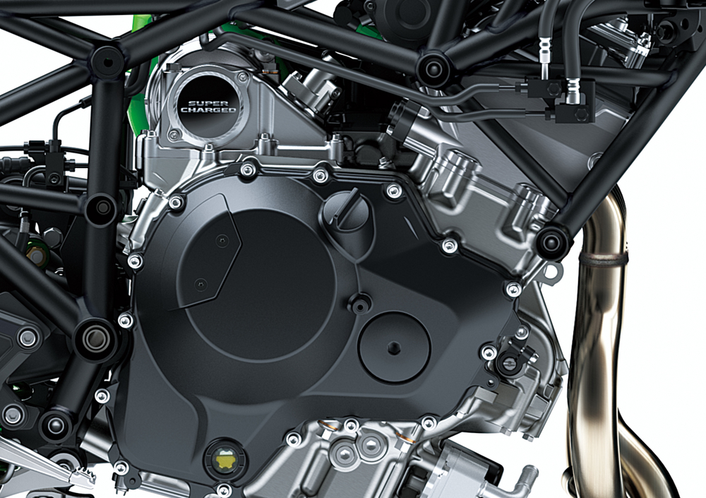 Anche il cuore della Ninja H2 SX, al primo sguardo, è sempre lui, ma i suoi componenti interni sono in gran parte inediti, studiati e dimensionati per offrire una fruibilità sconosciuta alla H2, con un’affidabilità e dei consumi di carburante accettabili per un utilizzo che vada oltre il semplice giro domenicale. Tutta la parte del propulsore che comprende l’aspirazione e i corpi farfallati (che passano da 50 a 40 mm di diametro), e i relativi condotti di ammissione e scarico, sono specifici per la SX. La girante del compressore ha un profilo inedito, così come sono differenti l’impianto di scarico, la testa, i pistoni, le bielle, e anche i rapporti del cambio.