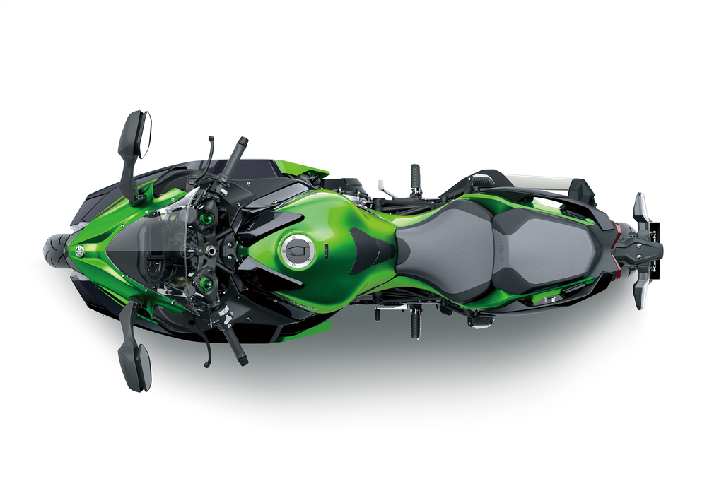 Anche il telaio a traliccio è stato completamente riprogettato, con i diametri dei tubi che crescono di un paio di millimetri in alcuni punti, e un disegno leggermente differente; del tutto inedito è invece il telaietto posteriore che, ricordiamo, deve sorreggere un passeggero e due bauletti da 28 litri, l’utilizzo dei quali non pregiudica il raggiungimento, ove possibile, della velocità massima (stimata poco oltre i 300 km/h). L'interasse è più lungo di 25 mm rispetto alla H2, e l'angolo di sterzata arriva fino a 30° per facilitare le manovre a bassa velocità.