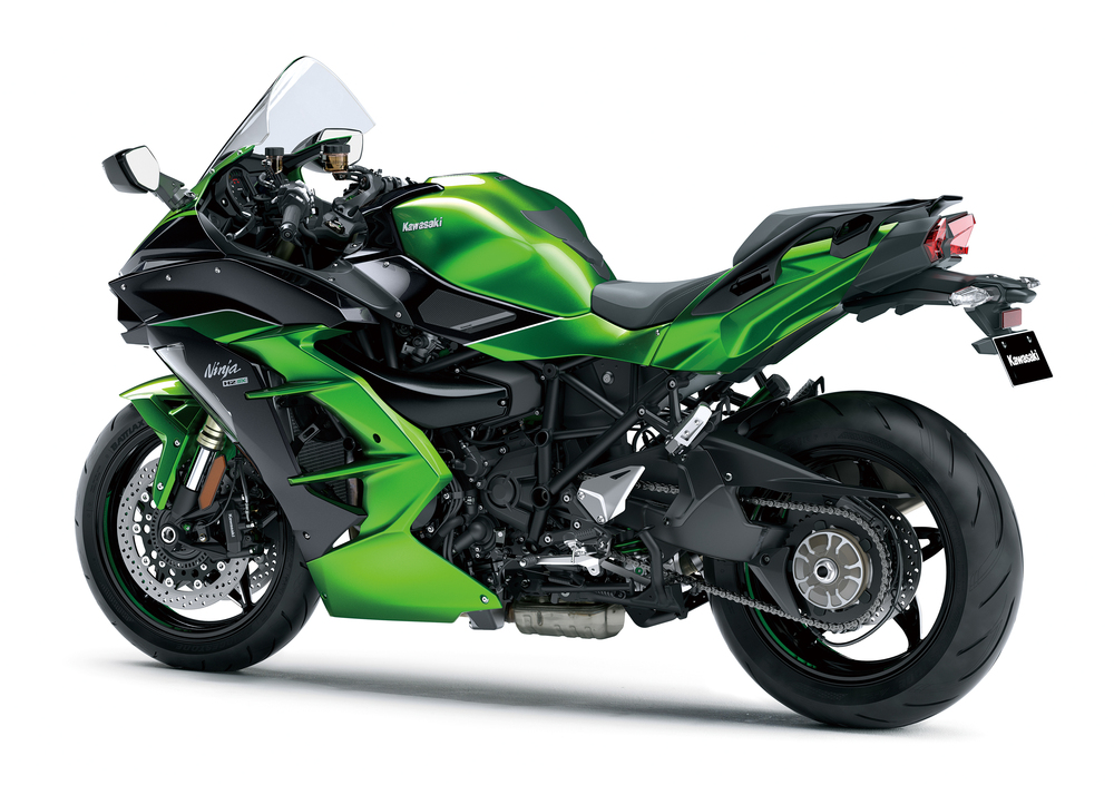 Le due H2 (la versione “R” non la consideriamo neanche in quanto non omologata per utilizzo stradale), fanno parte della stessa famiglia, ma i punti di contatto tra la versione “SX” e la H2 standard sono decisamente meno rispetto a quelli che uniscono la H2 alla H2 R. Stesso stile, un design condiviso sulla carta, molto meno nella realtà, con il vestito che ricorda - ma è molto diverso - un gruppo ottico che richiama, ma che è differente, e con il posteriore pensato per un passeggero, e che può accogliere anche un paio di borse, a differenza di quello rastremato e monoposto della H2; e inoltre un serbatoio che aumenta di volume da 17 a 19 litri. Rimane in bella vista sul cupolino il logo di Kawasaki Industries, a significare che anche questa H2 SX nasce dall’ormai pluri-decennale esperienza che Kawasaki ha consolidato in campo aeronautico/aerospaziale.