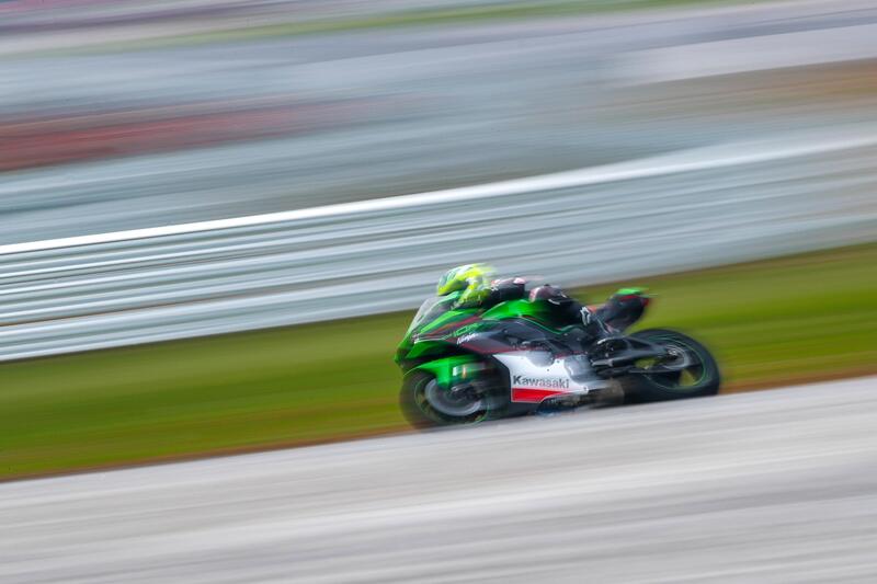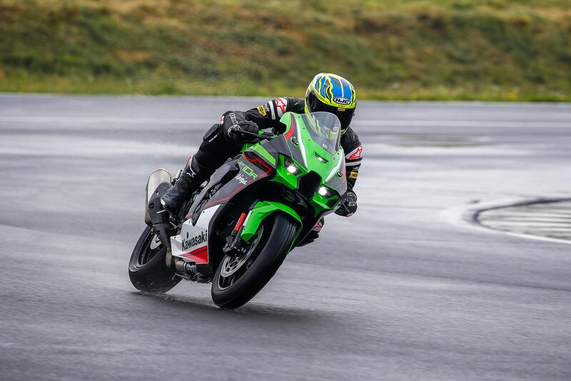 Il (rinnovato) circuito di Cremona è purtroppo allagato dalla pioggia. Le “nostre” Kawasaki Ninja ZX-10R montano fortunatamente pneumatici rain, che ci consentono di farci perlomeno una prima impressione sull’evoluzione di cui è stata oggetto la supersportiva di Akashi.