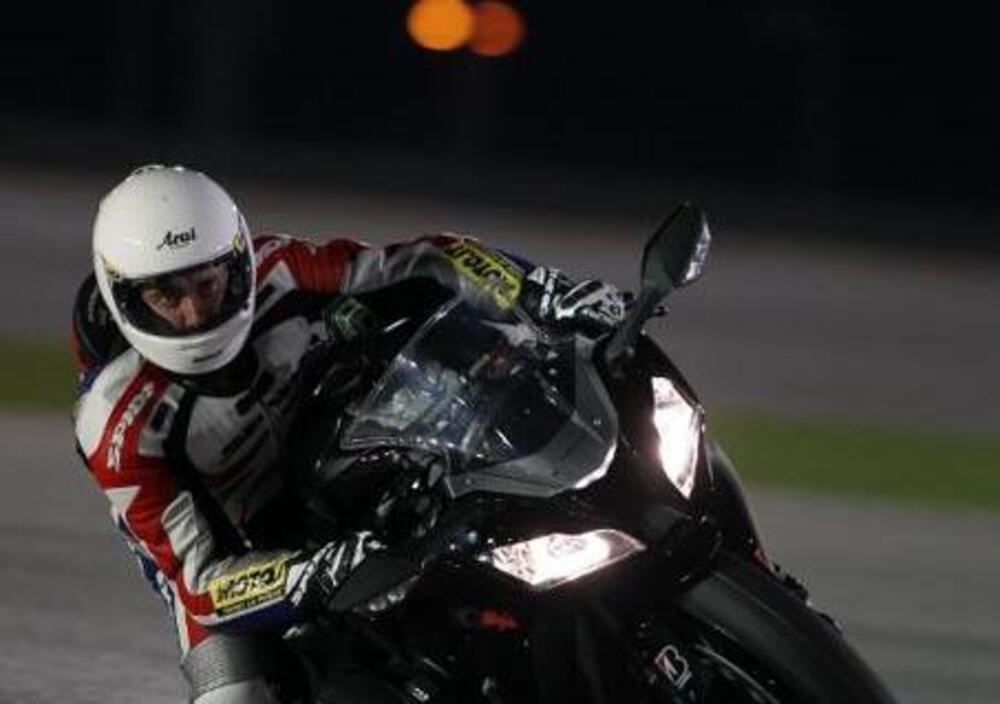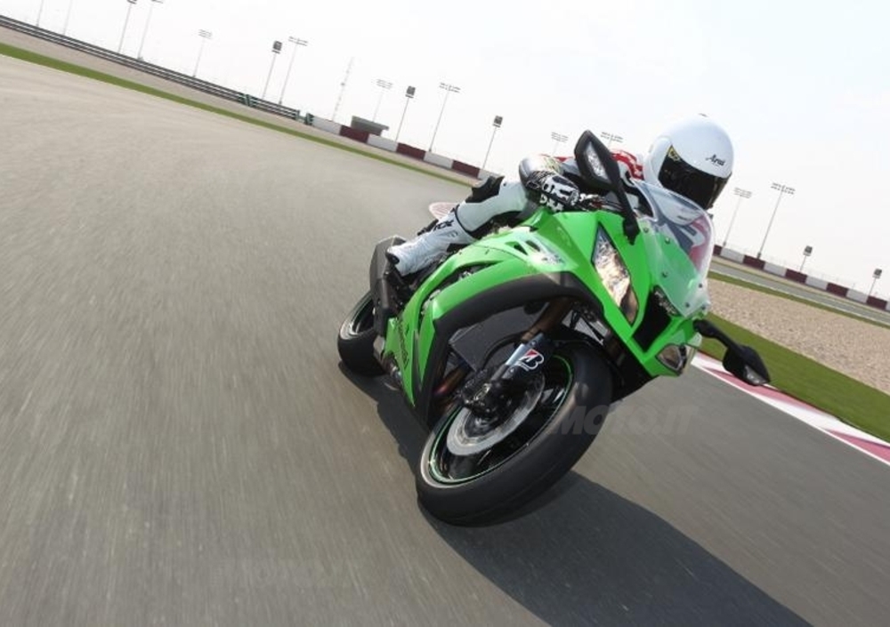 Il manubrio largo è una caratteristica delle ultime serie della Ninja, che ritroviamo anche su questa ultima ZX-10R, e oltre a offrire una percezione di controllo ottimale, non affatica polsi e avambracci anche dopo parecchi giri. L’autodromo di Losail non è di certo una pista da staccatone in stile Monza, ma nel complesso la posizione in sella aiuta parecchio braccia e spalle a non affaticarsi con troppa facilità.
