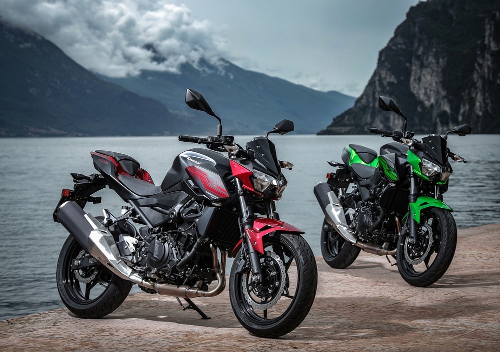 Rispetto alla carenata, le sospensioni hanno una taratura differente, con molle più morbide per aumentare il comfort in città. Il propulsore bicilindrico da 399 cc raffreddato a liquido (alesaggio x corsa: 70.0 x 51.8 mm) è il più potente della categoria: ben 45 CV a 10.000 giri/min e 38 Nm a 8.000 giri/min. Inoltre, la nuova Z400 monta di serie la frizione antisaltellamento, studiata per alleggerire il carico sulla leva e offrire sensazioni migliori nelle fasi di cambiata e frenata. Per concludere i dettagli tecnici, l’impianto frenante è caratterizzato da un disco singolo da 310 mm con pinza a due pistoncini all’anteriore e disco da 220 mm, morso sempre da una pinza a due pistoncini, al posteriore. Ovviamente, è presente l’ABS di serie.