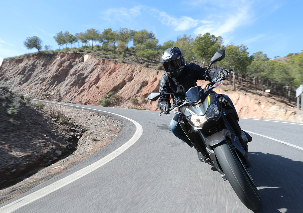 Dopo tre curve si è già entrati in sintonia con la Z900, grazie a una ciclistica a punto. Ha un avantreno non particolarmente carico, per offrire una buona maneggevolezza a bassa velocità, e quote di sterzo scelte in funzione della stabilità. Tanto che, pur con una buona agilità nello stretto, non si ha mai la sensazione di avere uno sterzo nervoso, non ci sono scuotimenti nemmeno sullo sconnesso brutto, e questo rende la vita facile anche in accelerazione. All'aumentare della velocità, un po' di lavoro di manubrio va fatto nei cambi di direzione veloci, ma in generale il compromesso fra precisione e maneggevolezza è molto buono.
