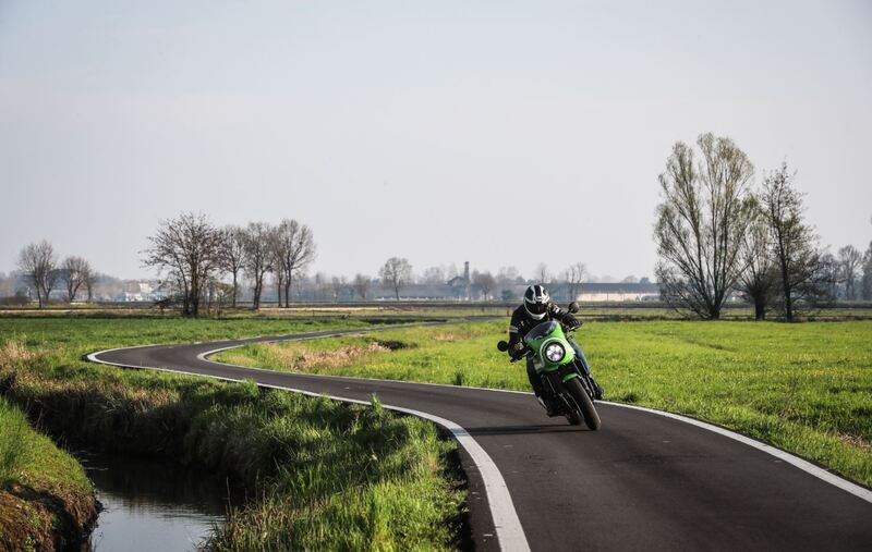 E’ il doppio volto di un motore civilissimo da usare nel traffico e con una bella personalità quando lo si fa distendere tirando per bene le marce. La differenza di potenza agli alti regimi con la Z900 si sente, ma nel taglio da 125 a 111 cavalli le prestazioni globali non sono state mortificate visto che ai medi regimi, quelli che si usano prevalentemente nel misto, la coppia è migliorata: nell’ottica di una moto classica, seppur dal sapore sportivo, ce n’è insomma abbastanza da divertirsi. L’introduzione del controllo di trazione, assente sulla recente Z900, è infine l’aiuto che mancava per la guida sul bagnato (in questo caso usate il livello 2) e sul pavé.