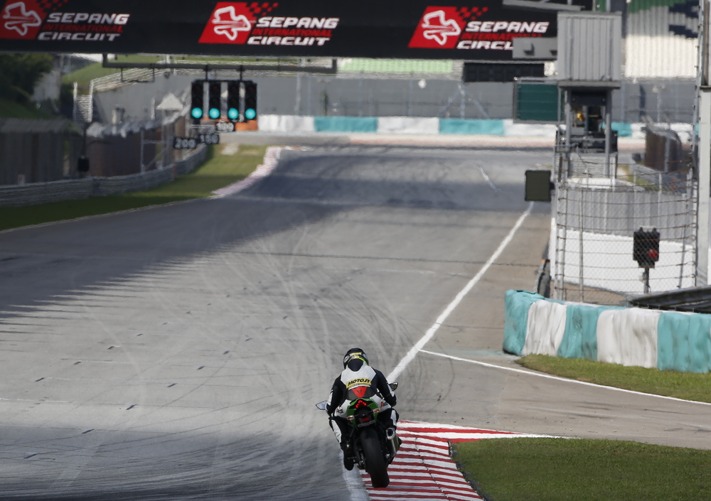La prima presa di contatto con la pista ci distrae in parte dal dare un giudizio a freddo (si fa per dire ...) riguardo la moto, ma dopo aver capito come "gira" l'autodromo di Sepang, ci accorgiamo di quanto sia confidenziale e chiaro il rapporto con la superbike di Akashi. Stiamo girando con il controllo di trazione su livello 2, freno motore "L" e mappa motore Full power, e la ZX-10R ci conquista subito.