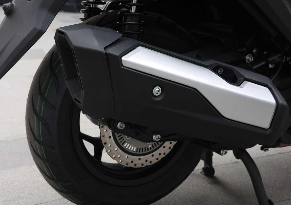 I cerchi, da 14 pollici all'anteriore e 13 al posteriore, calzano pneumatici da 120/70 e 150/70.