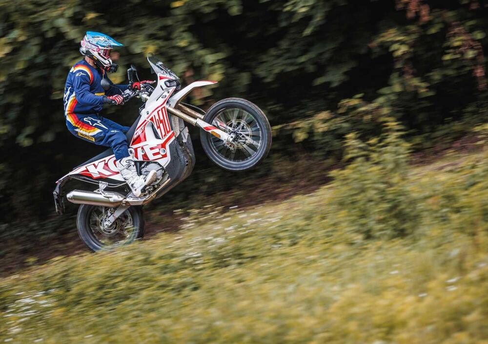 Pesa 145 kg senza benzina, ha sospensioni completamente regolabili da oltre 300 mm di escursione e la sella a 96 cm. Non disperate però: arriverà in Italia anche una versione LOW con sella a 91 cm ed escursione delle sospensioni ridotta a 250 mm. C'è anche una versione Factory senza catalizzatore (arriva a 54 cavalli) e con torretta in carbonio porta roadbook. Non è detto che venga importata però, perché si sta valutando di importare solo il kit per la torretta (non ci sono altre modifiche sostanziali).