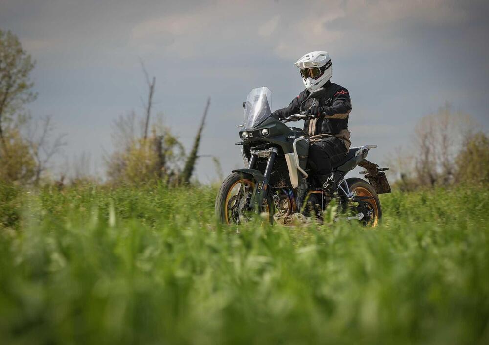 Ma vediamo come va! La moto è leggera, mai manovrata da fermo una bicilindrica di quasi 800 cc con un peso così basso (siamo a 191 kg effettivi, con 19 litri di benzina nel serbatoio di plastica). La sella è alta (siamo a 875 mm), ma bisogna ricordare che le sospensioni della Pro danno ben 240 mm di escursione.