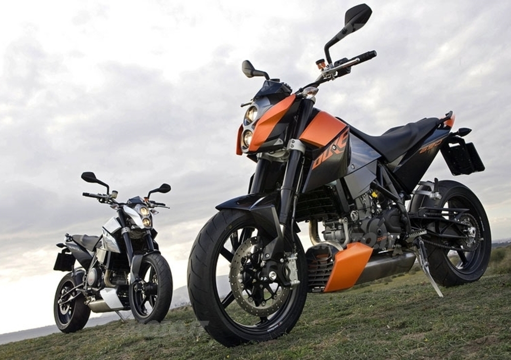Ktm 690 Enduro ed SMC rappresentano le due declinazioni opposte del nuovo LC4, la prima votata all’impiego offroad, la seconda alla guida supermotard su strada come in circuito.