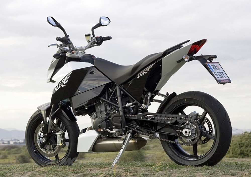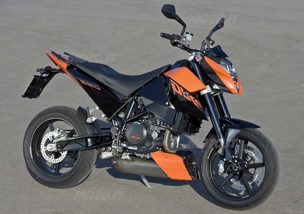 Rispetto alle sorelle, la Duke vanta un telaio completamente differente: direttamente derivato dalla 690 Supermoto, ha permesso di sistemare il serbatoio nella classica posizione, mentre l’air box si trova avvolto dal telaietto posteriore.
