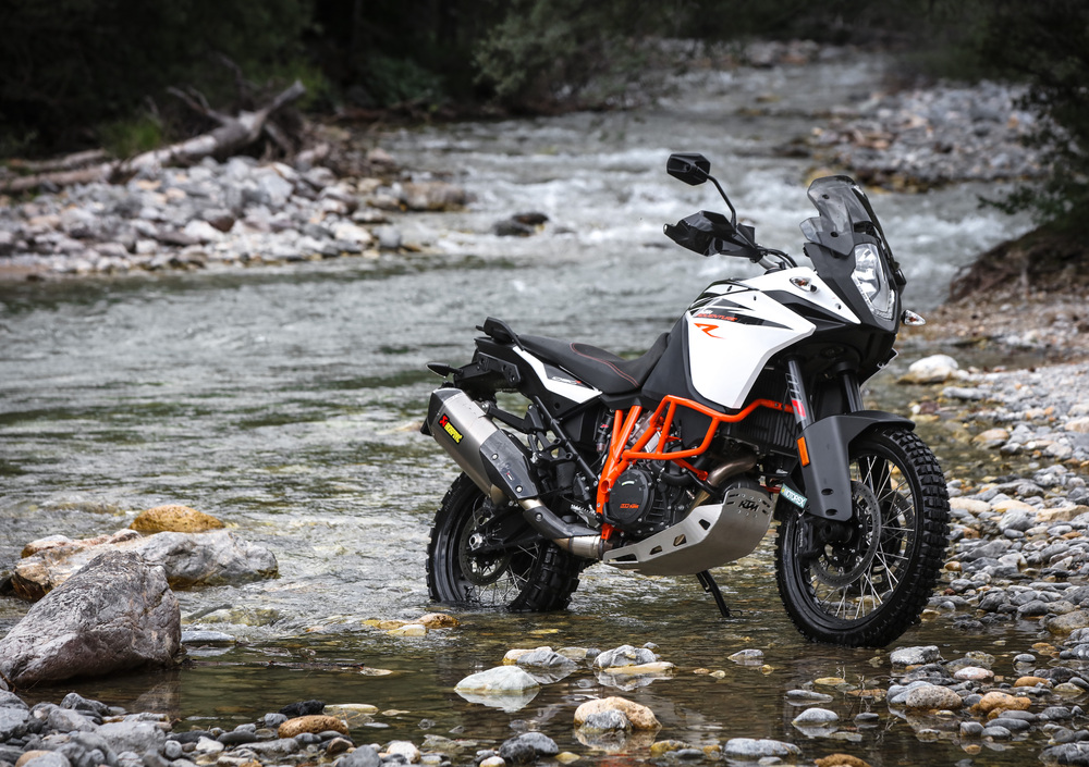 Il look è decisamente più aggressivo. Risaltano infatti il cupolino più basso (ma si può montare anche quello rialzato), il telaio in colore arancione e le barre paracolpi. Rispetto alla moto standard troviamo di serie la modalità offroad, che lavora in abbinamento con la mappa del motore dedicata, un controllo di trazione meno invasivo e un ABS che agisce soltanto sulla ruota anteriore. Sono poi confermati il robusto telaio a traliccio in acciaio e l'enorme forcellone in alluminio. Davanti ci sono 2 pinze Brembo a 4 pistoncini con attacco radiale e dischi da 320 mm. Dietro troviamo un disco da 267 mm con pinza a 2 pistoncini. L'ABS sfrutta l'impianto Bosch 9M+ a 2 canali (disinseribile), ma non prevede il cornering ABS, presente invece sulla 1290. Rispetto a questa il peso scende di circa 10 chili ed è pari ora a 207 kg a secco (214 senza benzina, 230 col pieno di 23 litri).