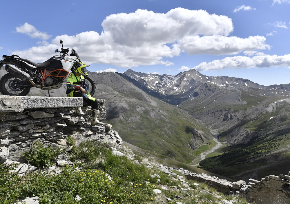 Quindi accendiamo il motore e diamo seguito alle nostre aspettative sulle splendide montagne attorno a Bardonecchia. Chiederemo alla KTM 1090 Adventure R di portarci in cima alle Alpi, sullo Jafferau e sul Sommelier, circondati da una neve che non molla il colpo nemmeno a metà luglio (guardate il video in alto).