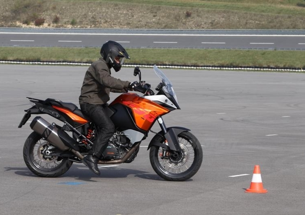 L’effetto è paragonabile a quello dei controlli di trazione sportivi più recenti, che lasciano innescare il pattinamento ma impediscono alla ruota posteriore di andare troppo fuori linea rispetto all’anteriore. Allo stesso modo, l’Adventure si raddrizza leggermente ma mantiene la sua direzionalità, evitando di mandarvi larghi e quindi fuori strada. Una manovra d’emergenza rischiosa e che esporrebbe ad altri pericoli – quello di scivolare, oppure di puntare dritti verso un ostacolo all’esterno della curva – diventa invece perfettamente controllabile come avviene su una moderna auto dotata di ESP.