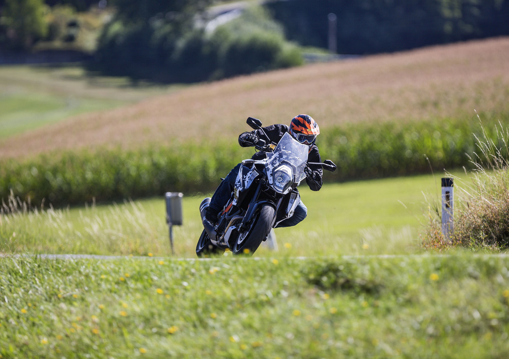 Mattighofen (Austria) – Che sorpresa! Francamente non ce la aspettavamo. Ci eravamo sorbiti sei ore di auto (molto volentieri a dire il vero) per mettere le mani sulla nuova 690 Duke di cui avete appena letto la prova su Moto.it. Nella nostra testa la trasferta era tutta per lei. Lo dimostra in modo inequivocabile l’abbigliamento giovane, che avevamo scelto per la brillante monocilindrica austriaca, con tanto di cattivissimo casco da cross. Un po’ troppo sbarazzino per la belva che avremmo avuto l’onore di guidare – a nostra insaputa, avrebbe detto Scajola - di lì a poco.