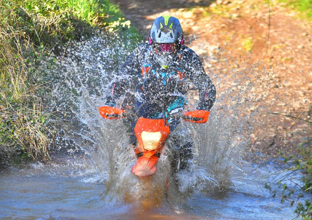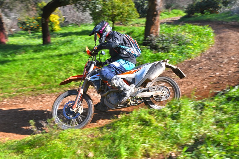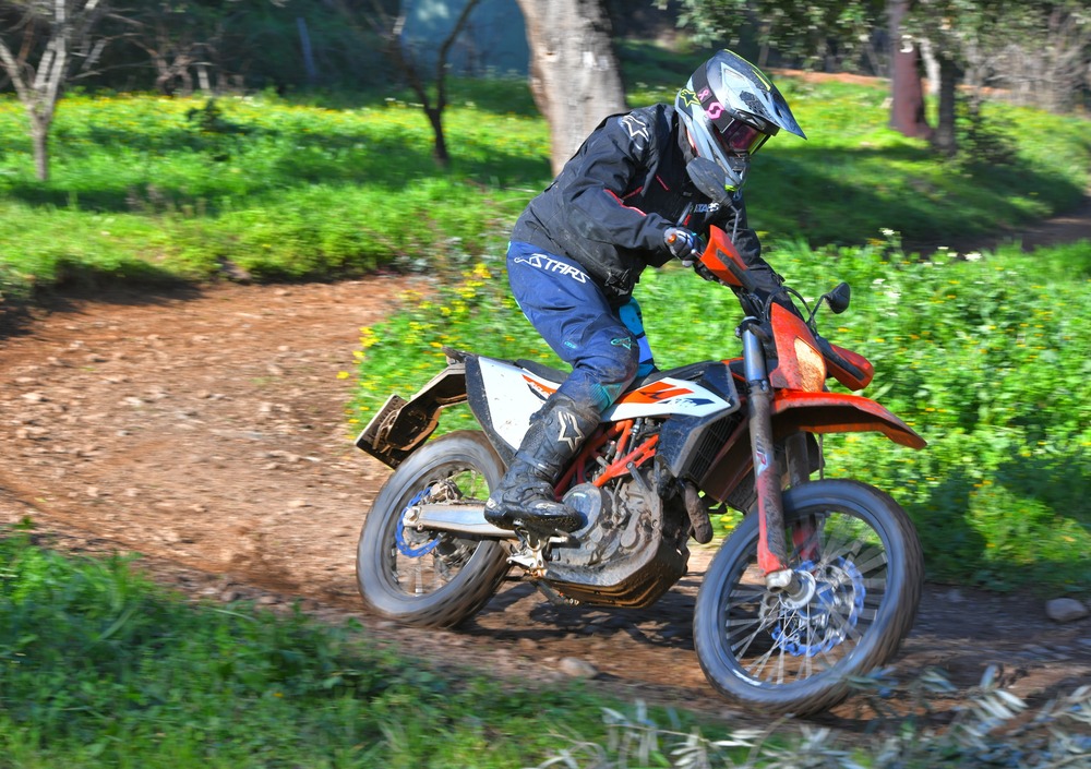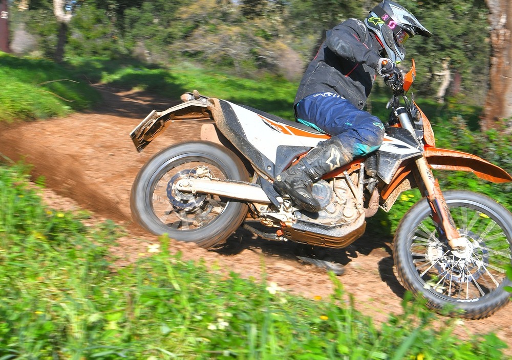 Il 65% dei componenti è nuovo: telaio rivisto nel cannotto di per avere un raggio di sterzo migliore nello stretto e motore cresciuto nella potenza. Soprattutto arriva il secondo contralbero (che già avevano le Husqvarna 701 e la Duke 690), che riduce drasticamente le vibrazioni (anche se non le elimina del tutto). Ora ci sono anche i controlli di trazione, le mappe motore e il cornering ABS. L'Enduro R è una vera MotoGP del fuoristrada, dal motore infinito e con una ciclistica stabile. E' una vera dualsport, che di contro non gradisce il fuoristrada estremo (ma non nasce per quello). Il motore sotto strappa ancora, se lo si forza sotto i 3.000 giri. Ma da qui e fino a oltre gli 8.500 giri spinge come un demonio. Sembra di guidare una MotoGP tassellata, grazie anche alle cambiate elettroniche che ricordano i botti di un petardo. Le sospensioni sono un po' morbide, ma hanno un'ottima idraulica. Nello stretto non è maneggevole come una enduro racing, ma si muove comunque con una discreta agilità e - finalmente - il raggio di sterzo migliorato la rende meno impacciata nelle svolte strette.