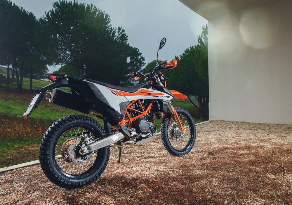 Dove i due modelli si allontanano è naturalmente nella dimensione dei cerchi, con la versione enduro dotata della tradizionale accoppiata 21-18” con pneumatici Mitas E07, mentre la motard SMC si affida a due unità da 17”. Il comparto sospensioni della Enduro conta su una forcella WP XPLOR completamente regolabile con idraulica separata sui due steli.
