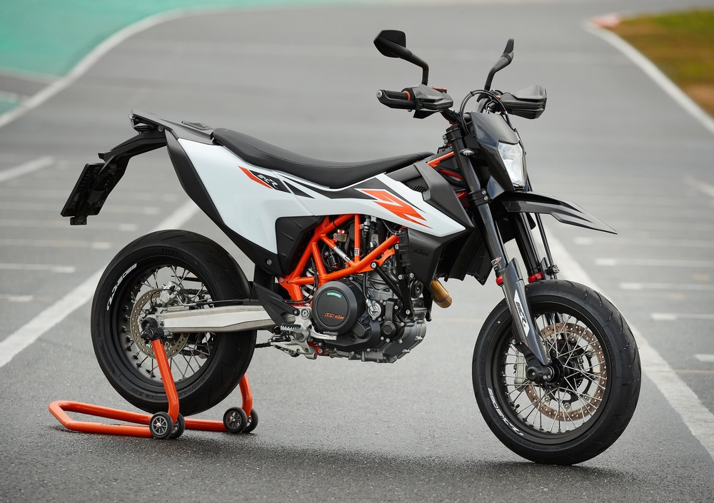 Le 690 condividono il telaio a traliccio in acciaio e il forcellone in alluminio. La frizione anti-saltellamento è di serie su entrambe le versioni, ma la SMC R dispone anche del sistema MSR che aiuta a gestire il freno motore in scalata. Il controllo di trazione è ovviamente presente e il motore si può depotenziare per la guida con patente A2. Sono omologate per il trasporto del passeggero. Esiste persino il kit per abbassare le moto di 4 cm. Il prezzo è di 11.099 euro franco concessionario.