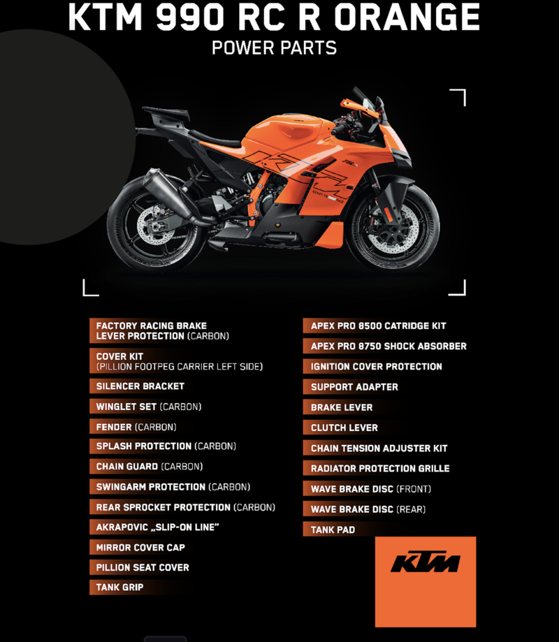 Ciò che rende questo progetto particolarmente interessante è la sua origine. Non nasce solo da una decisione aziendale, ma è il risultato diretto delle richieste dei clienti e dei feedback raccolti dalla rete di concessionari. Questa 990 RC R porta su strada il prezioso know-how maturato da KTM sui circuiti di gara in MotoGP dal 2017 e nelle categorie minori Moto2 e Moto3 dal 2012.