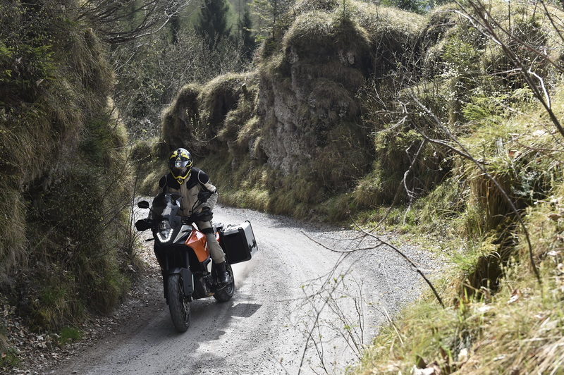 Di seguito trovate invece il nostro resoconto di una giornata molto speciale, trascorsa nella bergamasca. Siamo partiti dalla sede di KTM Italia, a due passi da Bergamo, e abbiamo raggiunto la Presolana, alternandoci in sella ai quattro modelli che compongono la famiglia Adventure. Ci ha guidati un pilota particolare, Arnaldo Nicoli. L’Arno ha vinto quattro Sei Giorni con la Maglia Azzurra ed è uno dei rappresentanti del dream team italiano che ha portato alta la nostra bandiera nei magici anni novanta (insieme alle leggende dell’enduro Gio Sala, Mario Rinaldi, Stefano Passeri, Fabio Farioli).