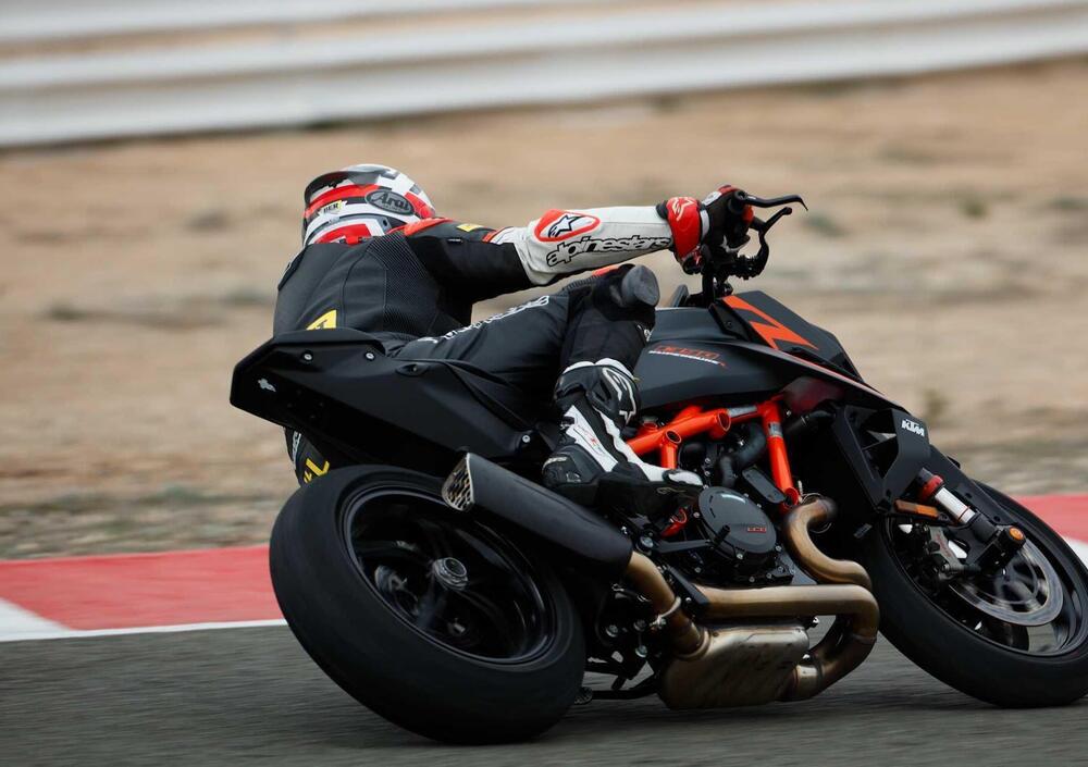 Con la SUPER DUKE 1390 DUKE il meteo ci ha graziato, e solo un vento teso ha disturbato il test in pista, portando anche tanta sabbia sull'asfalto, che ha messo a dura prova le Michelin Power GP.