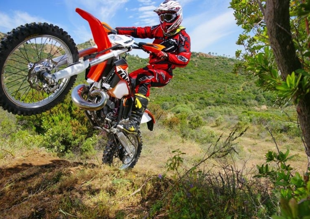 Benché se ne parli già da qualche anno, KTM posticipa uteriormente il progetto dell’iniezione diretta sui motori a due tempi. Il prodotto pare essere pronto da tempo, ma la sua messa sul mercato comporterebbe una lievitazione di costi anche di manutenzione e ciò andrebbe contro la logica delle motorizzazioni a miscela, tornate in voga proprio per la loro economia di gestione. Solo quando sarà obbligatorio per l’omologazione, per motivi di inquinamento, vedremo le due tempi con l’iniezione diretta. Per quanto concerne gli aggiornamenti 2014 sulla gamma due tempi riscontriamo l’eliminazione del pacco lamelle VForce in favore di un prodotto realizzato direttamente da KTM, un nuovo pistone per il 125, un nuovo motorino di avviamento ed una nuova testa cilindro ridisegnata per i motori 250 e 300. Sulle sorelle maggiori, rimane confermata la possibilità di gestire il carico delle molle di apertura della valvola di scarico, che consente di modificare in maniera notevole il carattere dell’erogazione.