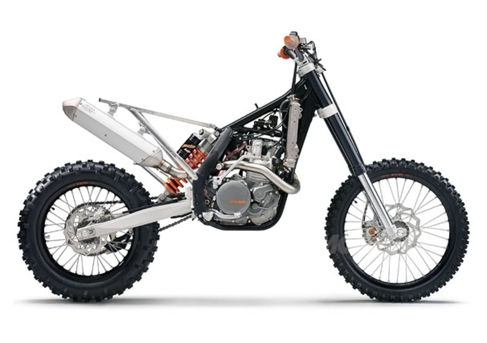 Decisamente la novità più attesa dell'anno. In molti si aspettavano un rimaneggiamento della versione cross, ma questo è un vero e proprio progetto indipendente, nato e sviluppato ex novo. Il motore delle SX era stato studiato e progettato appositamente per l'utilizzo specifico, senza compromessi del caso e quindi non sarebbe assolutamente potuto andare bene per il modello enduro. Per fare un esempio, il basamento del cambio della SX ospita solo 4 marce e questa configurazione, ottima per le piste, non sarebbe sicuramente stata positiva per le EXC.