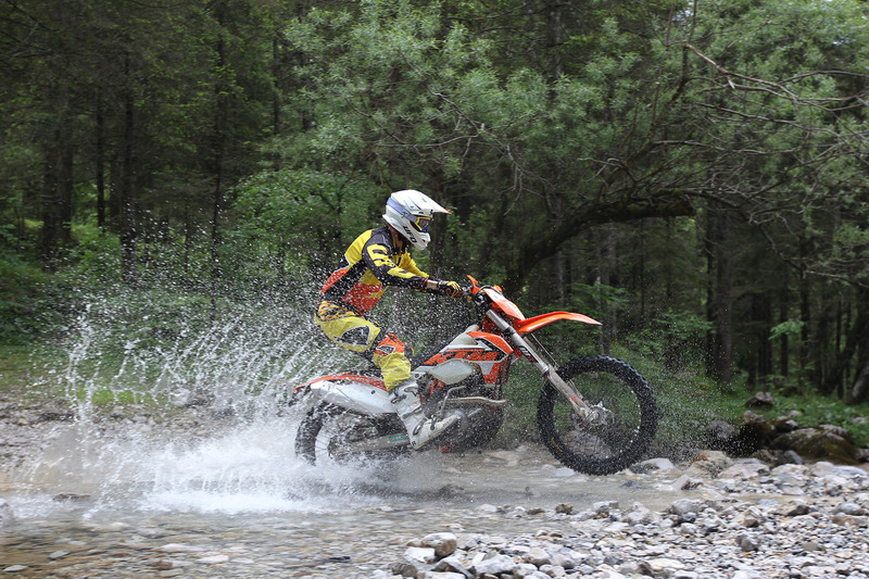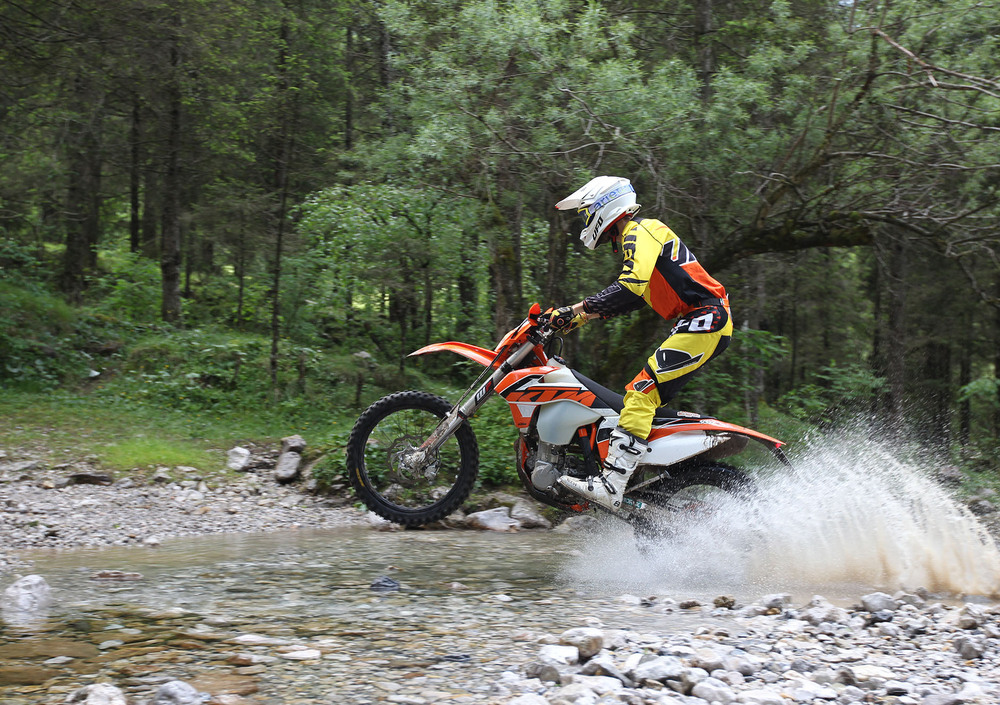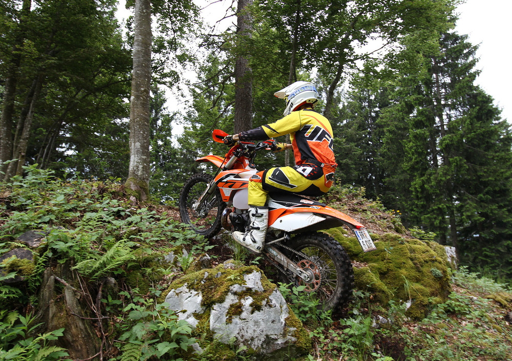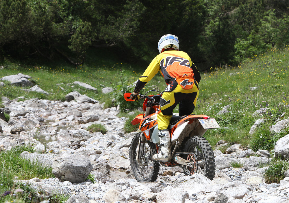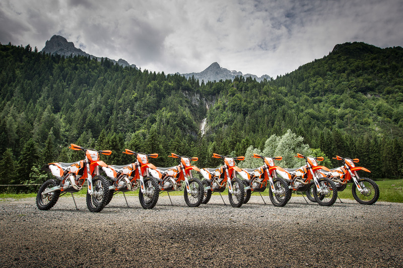 Siamo nella tana del lupo, precisamente nei pressi della casa di Arnaldo Nicoli, ad Ardesio, in una delle prime giornate veramente estive, per provare la nuova gamma enduro nei terreni dove è stata forgiata. Con noi anche Matthew Philips, campione del mondo enduro, ed uno dei principali attori che, assieme agli altri piloti del team enduro di Fabio Farioli, concorrono ogni giorno a sviluppare costantemente le moto KTM che poi vengono immesse sul mercato.