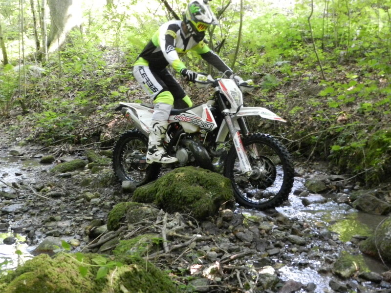 Marco Rigo collabora ormai da tanti anni con la JD (ditta del Novarese), che gli fornisce oltre che le centraline a bordo con le quali è possibile avere due mappature da selezionare con uno switch al manubrio, anche il software di sviluppo delle varie curve. Mappa due viene dedicata ai terreni dove c’è pochissimo grip e c’è da ricercare la massima aderenza possibile, a scapito anche della potenza massima la quale viene notevolmente ridotta, l’ideale per affrontare quelle salite viscide dove si fa veramente fatica a scaricare i cavalli per terra. Risultato che ti trovi a cavalcare una moto che si arrampica su per i muri con un filo di gas, se carichi bene le pedane ha una trazione incredibile e devi veramente concentrarti per stare attaccato, lei sale e tu devi solo starci sopra.