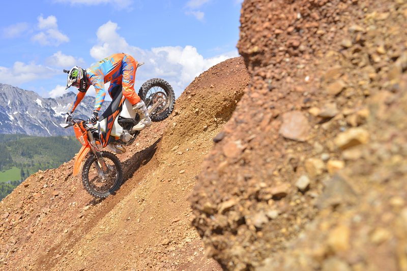 Le nuove enduro made in Austria si confermano essere davvero efficaci per l’enduro più impegnativo. La nuova alimentazione trasmette una sensazione di leggerezza al mezzo in movimento che ti sembra a volte di avere per le mani una bicicletta piuttosto che una moto. La forcella risulta più scorrevole e sostenuta nella parte finale di corsa anche se l’impostazione di base è tendente al morbido. Il mono, sempre di tecnologia PDS, non appena lo carichi con almeno un piede sulle pedane attacca con sicurezza la ruota posteriore sul terreno e scarica i cavalli con sicurezza.