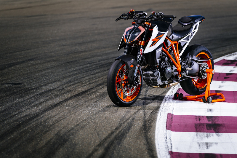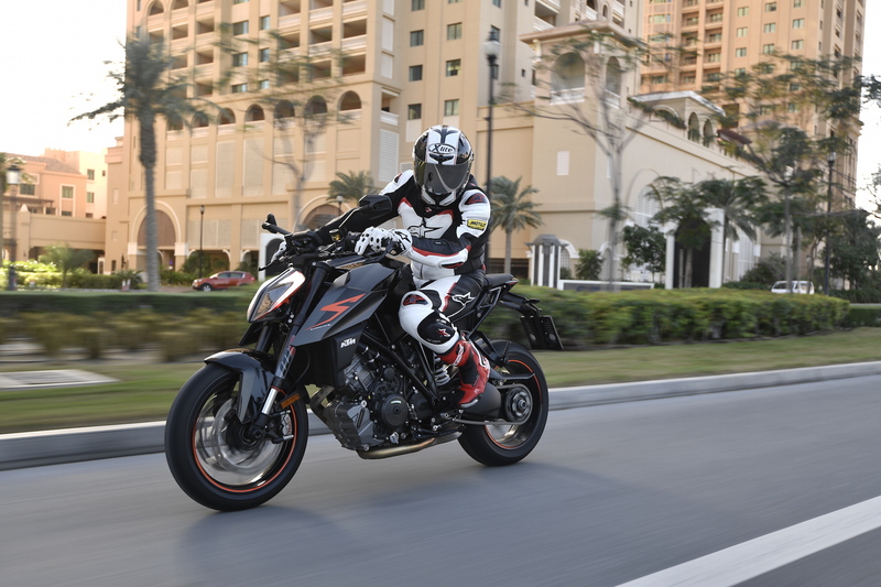 La prima cosa che si nota è la rinnovata strumentazione completamente digitale con display TFT, sulla quale possono essere visualizzate le regolazioni dei Ride Mode, tre mappature denominate Rain - Street - Sport, la prima limitata a 130 cavalli mentre le altre due permettono di contare su tutti i 177 cavalli, con livelli di intervento del controllo di trazione e risposta del gas predefiniti. Per i più arditi l’MTC, il controllo di trazione, si può disinserire totalmente. Acquistando il Track Pack (il suo costo è di 349 Euro), si può dotare la 1290 Super Duke R di Launch Control, Throttle Response (la risposta del gas), regolabile su tre livelli (Track - Sport - Street), regolazione su 9 posizioni dell’MTC ed Anti Wheelie disinseribile.