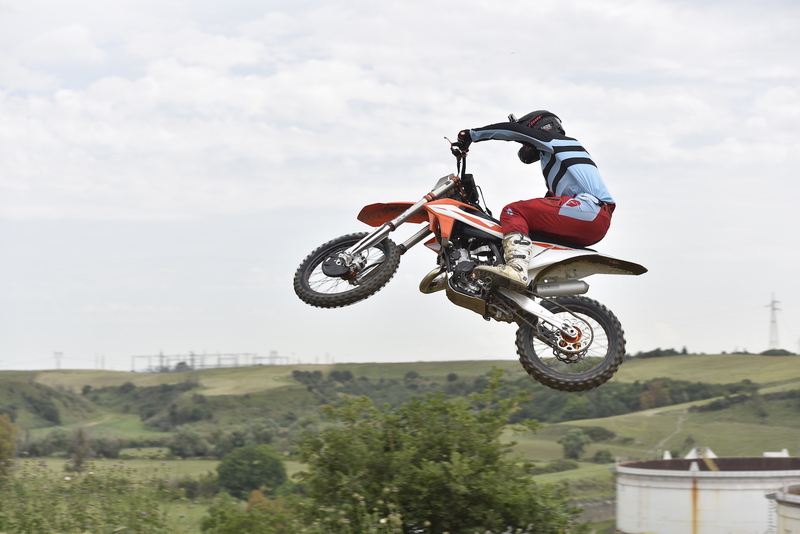 Sali in sella, e subito ti accorgi che a Mattighofen hanno lavorato dal punto di vista posturale. Tra le gambe senti la moto più stretta, in particolare nella zona dei radiatori, e la sella è decisamente più confortevole. Quando inizi a muoverti, queste prime impressioni si accentuano ancora di più in quanto ti senti più libero negli spostamenti, e la sella invece che contrastarti nelle buche in uscita di curva si comprime quel tanto che basta per accompagnarti fuori dagli appoggi senza farti rimbalzare. Il motore è corposo da paura, e anche in configurazione "mappa 2 e traction control" non perde di brio, anzi qui a Malagrotta, dove il terreno è a tratti scivoloso e serve far scorrere la moto e spazzolare in uscita di curva, ce l’hai sempre sotto controllo e non hai timore che ti scappi dalle mani. Inutile dire che quando invece decidi di tirare il cordino, la potenza sale a dismisura e raggiungi in poco tempo velocità imbarazzanti.