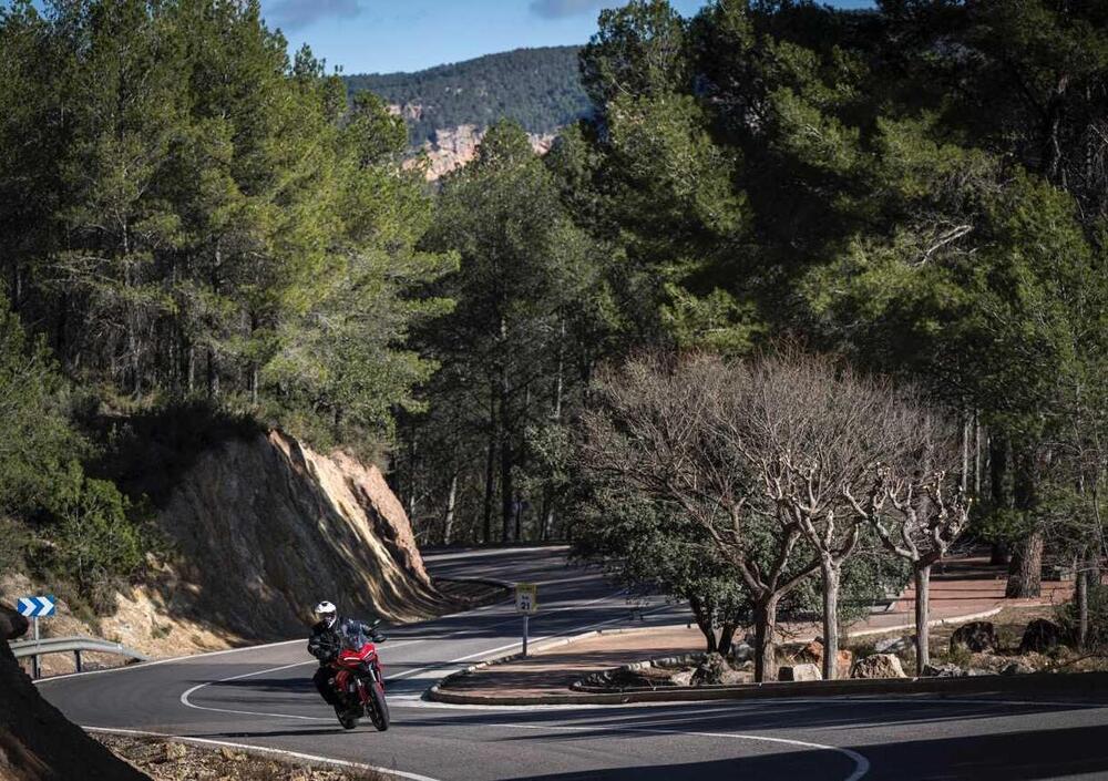 Con la nuova V2 tutto avviene in maniera molto naturale, si ha un'esaltante sensazione di controllo perché si sa sempre esattamente dove si sta mettendo la ruota anteriore e lo si fa senza sforzo. La posizione è azzeccata e comoda e anche la protezione all'aria è convincente per cui ci si sente da subito a proprio agio. Il motore ci è piaciuto di più proprio nei regimi intermedi quelli che usi quando sei in viaggio su un bel misto. Chi cerca la zona "rossa" del contagiri sarà contento di trovare comunque un notevole allungo ma si badi che non stiamo parlando del V4 e neppure del più "strappabraccia" dei bicilindrici Ducati, bensì di un campione di gentilezza, un vero gentleman che sa adattarsi ad ogni situazione.