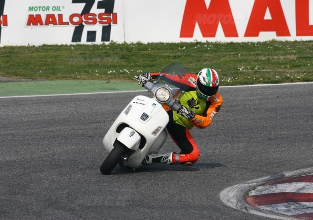 In direzione del lungo rettilineo di Adria la vespa si presenta: un’ottima spinta, quasi inaspettata, merito della trasmissione Malossi completa di Multivar 2000, Torque Driver, Torsion controller, Maxi delta system e cinghia dedicata. Il tiro del motore è corposo e lineare, senza cali di potenza, il cilindro completo di testa e albero a camme svolge eccellentemente il proprio lavoro. Purtroppo la mancanza del contagiri non aiuta a valutare l'erogazione, ma il motore gira allegro e non cala mai, sempre pronto fuori da qualsiasi curva, lenta o veloce che sia, garantendo comunque una velocità massima al fondo del rettilineo di 130 km/h: siamo su una Vespa!